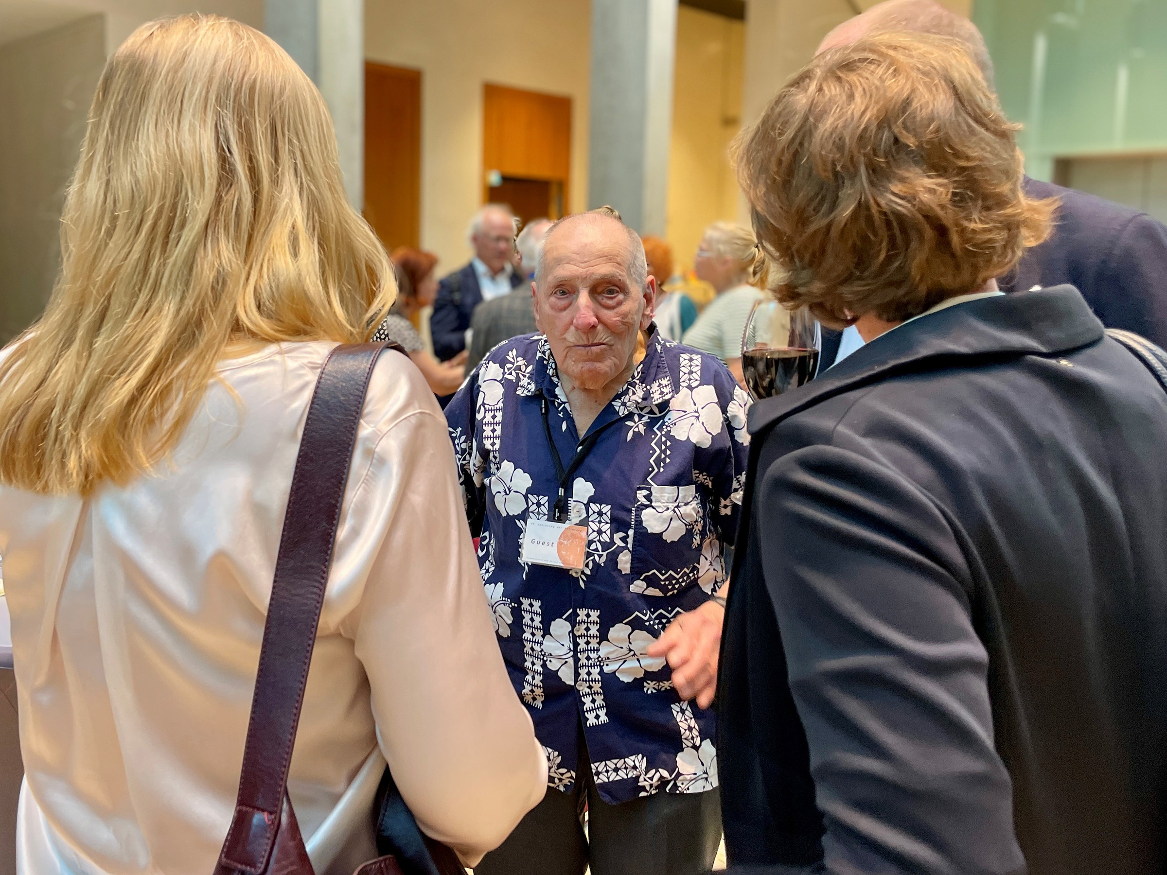Unter der Moderation des Direktors der SBG Prof. Dr. Axel Drecroll berichtete Mykola Urban, geboren 1924 in Charkiw, lebendig und authentisch unter anderem von seiner Verhaftung im Jahr 1942, seiner Zeit im Konzentrationslager Sachsenhausen und seiner Flucht zur Roten Armee im Jahr 1945.